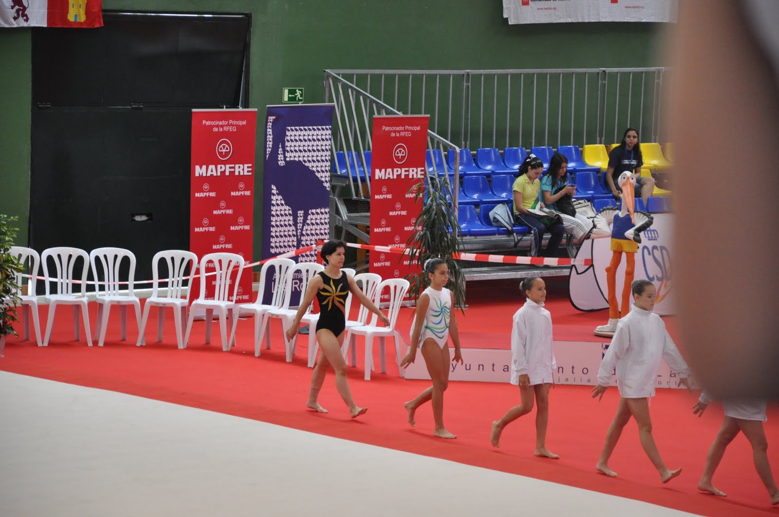 Aunque las pistas están muy bien acondicionadas, las gradas resultan MUY insuficientes para un evento de esta envergadura. No quiero ni imaginarme la que se va a montar el domingo cuando haya tropecientas niñas pequeñas compitiendo y más de la mitad de los padres, madres, abuelos y allegados que se traerá cada una no puedan ni entrar en el pabellón por la aglomeración… :-S